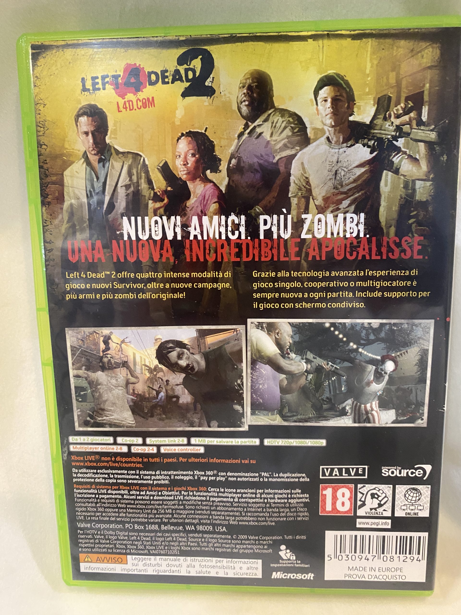 LEFT 4 DEAD 2 MICROSOFT XBOX 360 COMPLETO ITA